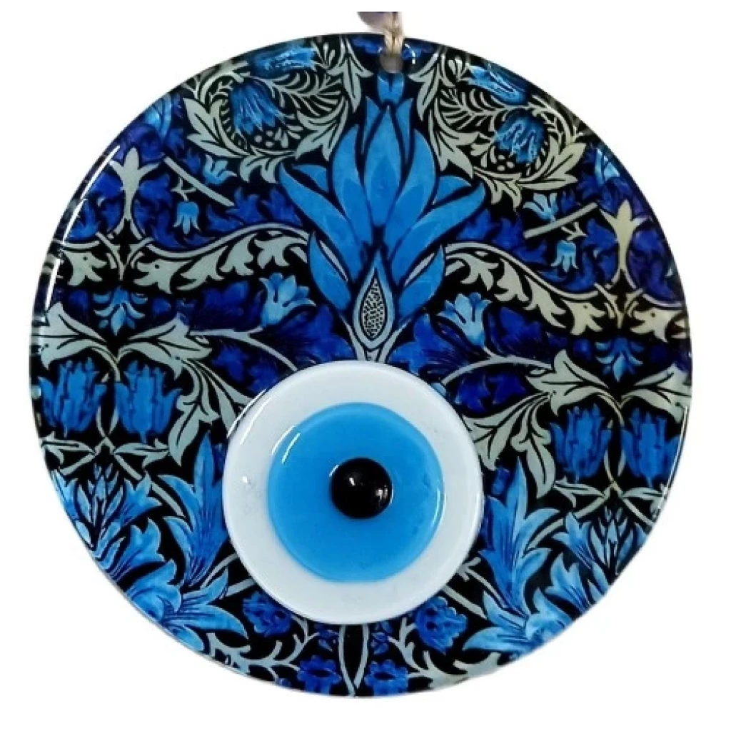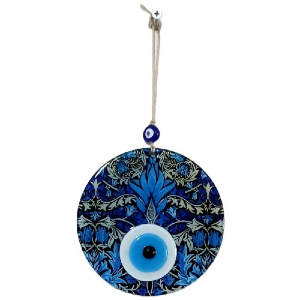 Turkuazın Zarafeti Nazar Boncuklu Füzyon Cam 16 Santimetre Çapında Elegant Duvar Süsü