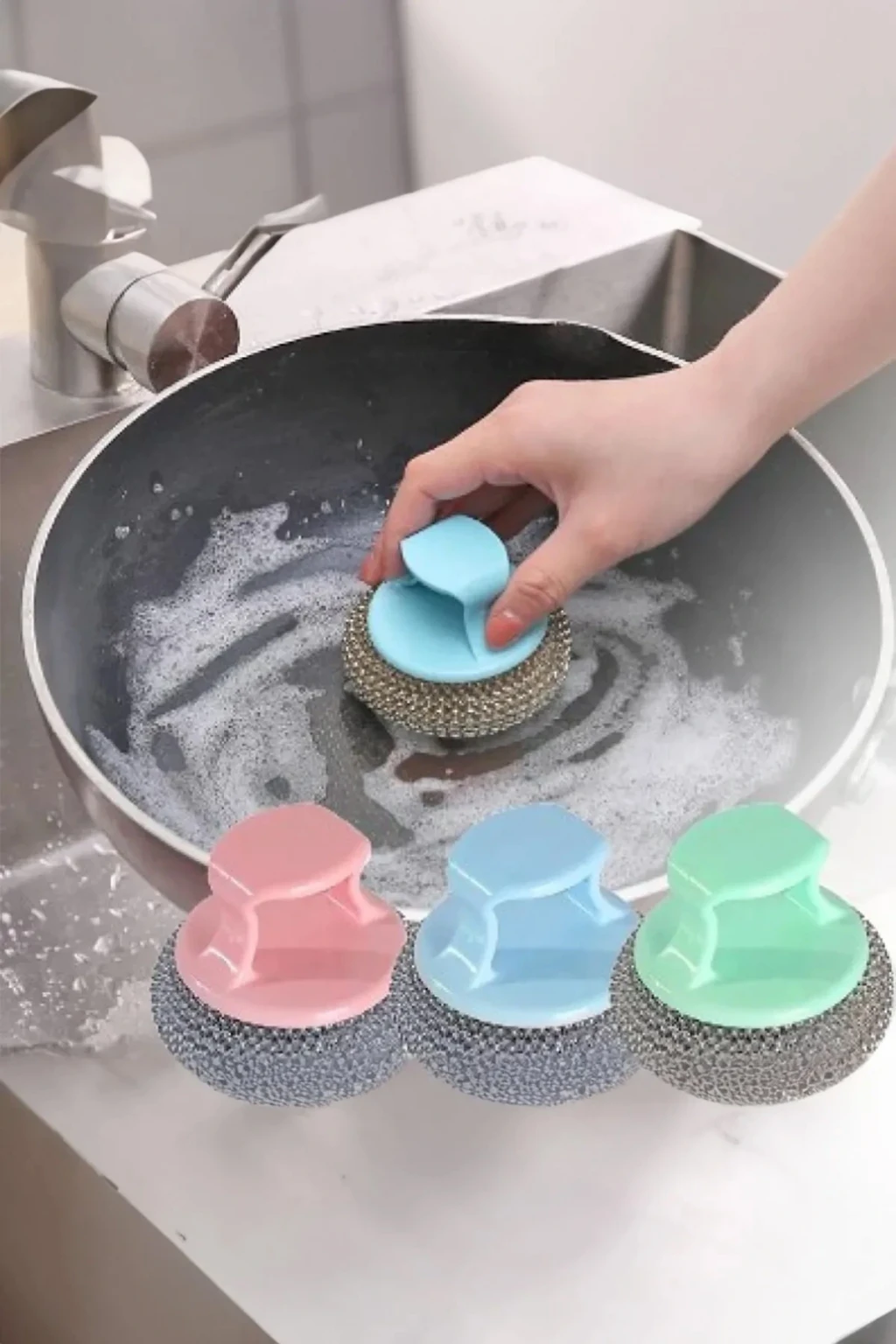 Tutacaklı Paslanmaz Çelik Top Bulaşık Ovma Teli Bulaşık Temizleme Fırçası Yıkama Süngeri