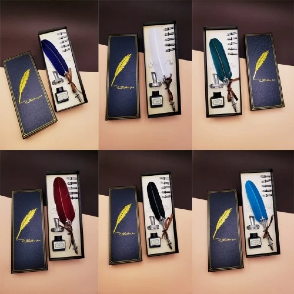 TÜYLÜ DİVİT KALEM SETİÖzel tasarımlı divit kalem seti  sevdiklerinize çok şık tasarımlı hediye.Divit kalem seti özel tasarım olarak tasarlanmış olup özel günlerde en iyi hediye seçeneğidir.Divit kalem setini masaüstü dekor olarak kullanabilirsiniz.Divit kalem set şık bir tasarıma sahip olup dikkatleri üstüne çekecektir.Ürün Özellikleri:* Divit kalem ucu metal tasarımlıdır uç kısmı tüylüdür.* Yanında 5 farklı yazı başlığı vardır.* Set içerisinde divit kalem mürekkebi bulunur.* Karışık renklerde gönderilmektedir.* Divit kalem seti özel tasarımlı hediyelik kutusunda gönderilir. Paket İçeriği:* 1 adet tüylü kalem* 1 adet mürekkep* 5 adet divit uç
