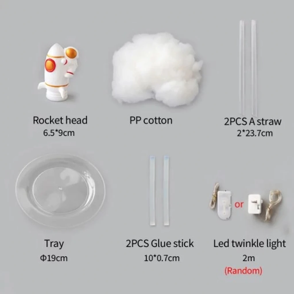 Uçan Astronot Tasarımlı Gece LambasıRoket üstünde uzaya uçan astronot gece lambası ile masanız tv üniteleriniz vb koyacağınız yerlerde oldukça dikkat çekmektedir.Roket üzerinde uçan astronot son zamanların trend çeşitlerinden olup astronot severlere verebileceğiniz hediyelerden.Sevdiğiniz kişilere verebileceğin dekoratif roket üzerinde uçan astronot gece lambası.Son zamanların çok konuşulan mesleği Astronot Tasarım Dekoratif Gece Lambası tasarımı ve görünümü oldukça şıktır.Paket içerisinde demonte olarak çıkmakta olup 4.resim ve 5.resimde detaylı anlatım mevcuttur.Roket Üzerinde Uçan Astronot Gece Lambası, Astronot Lamba Özellikleri:* Kaliteli plastik malzemeden üretilmiştir.* Videosu alt kısımda mevcuttur detaylı kurulum için izleyiniz.* Paket içersinde pamuk bulunmaktadır.* Paket içerisinde çubuk ve silikon mevcuttur.* Tasarımı ve görünümü oldukça şıktır.* Roket üzerinde uçan astronot dekoratif olarak kullanılabilir.* 2 metre şerit led ışık bulunmaktadır.* Ürün demonte halde gönderilmektedir.* Ürünün hazırlanması detay resimleri 4. resim ve 5. resimde mevcuttur.