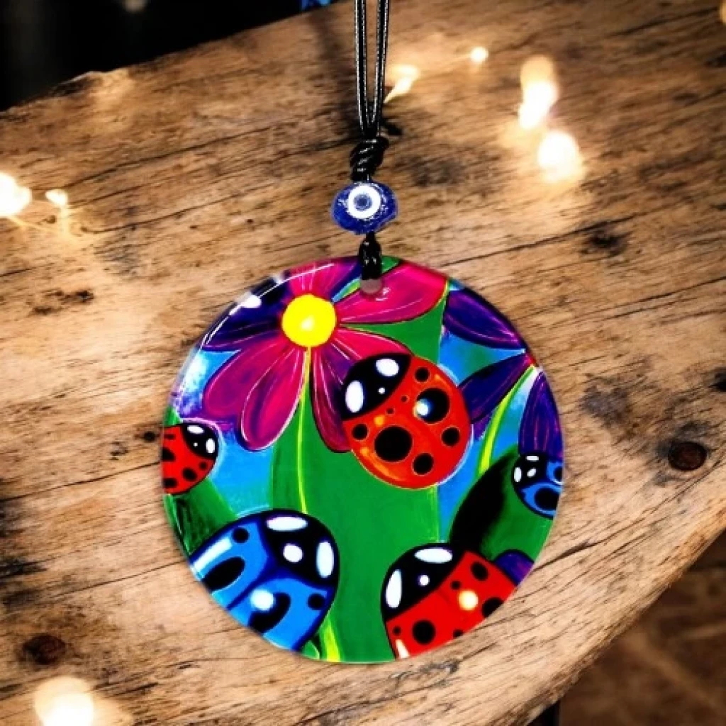 Ürünümüz 12 santimetre çapındadır. Ürünümüz ip dahil yaklaşık 25 santimetre boyundadır. Çok renkli tasarımı ile her türlü dekorasyona uyum sağlayarak mekanınıza canlılık katar. Ürünümüzü duvarınızı süslemek yada sevdiklerinize hediye etmek için tercih edebilirsiniz.