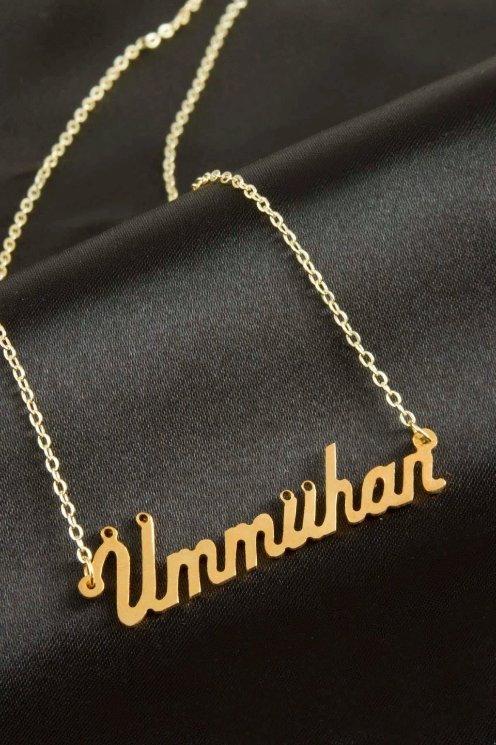 Ümmühan isimli kolye. İsimli kolye pirinç madeninden ve altın kaplamalıdır. Kişiye özel üretilmektedir.Yazdırmak istediğiniz ismi bize mesaj olarak iletmeniz gerekmektedir. Kullanıma bağlı olarak uzun süre kullanıma uygundur. Ürün malzemesi 1.sınıf kalitededir. Ürün ve zinciri sarı renktedir. Ürün zincir boyu 45 cm ve ürün üzerindeki isimler yaklaşık 3 cmdir. İsim boyları ürün ismine göre degişiklik göstermektedir.