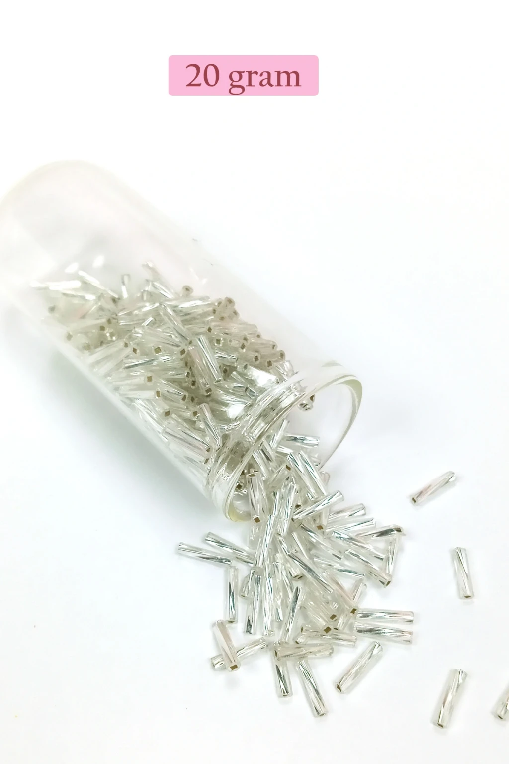 Uzun Boru Kesme Boncuk Çap 2mm Uzunluk 10 mm - 20 Gram - Parlak Gümüş - BNC257