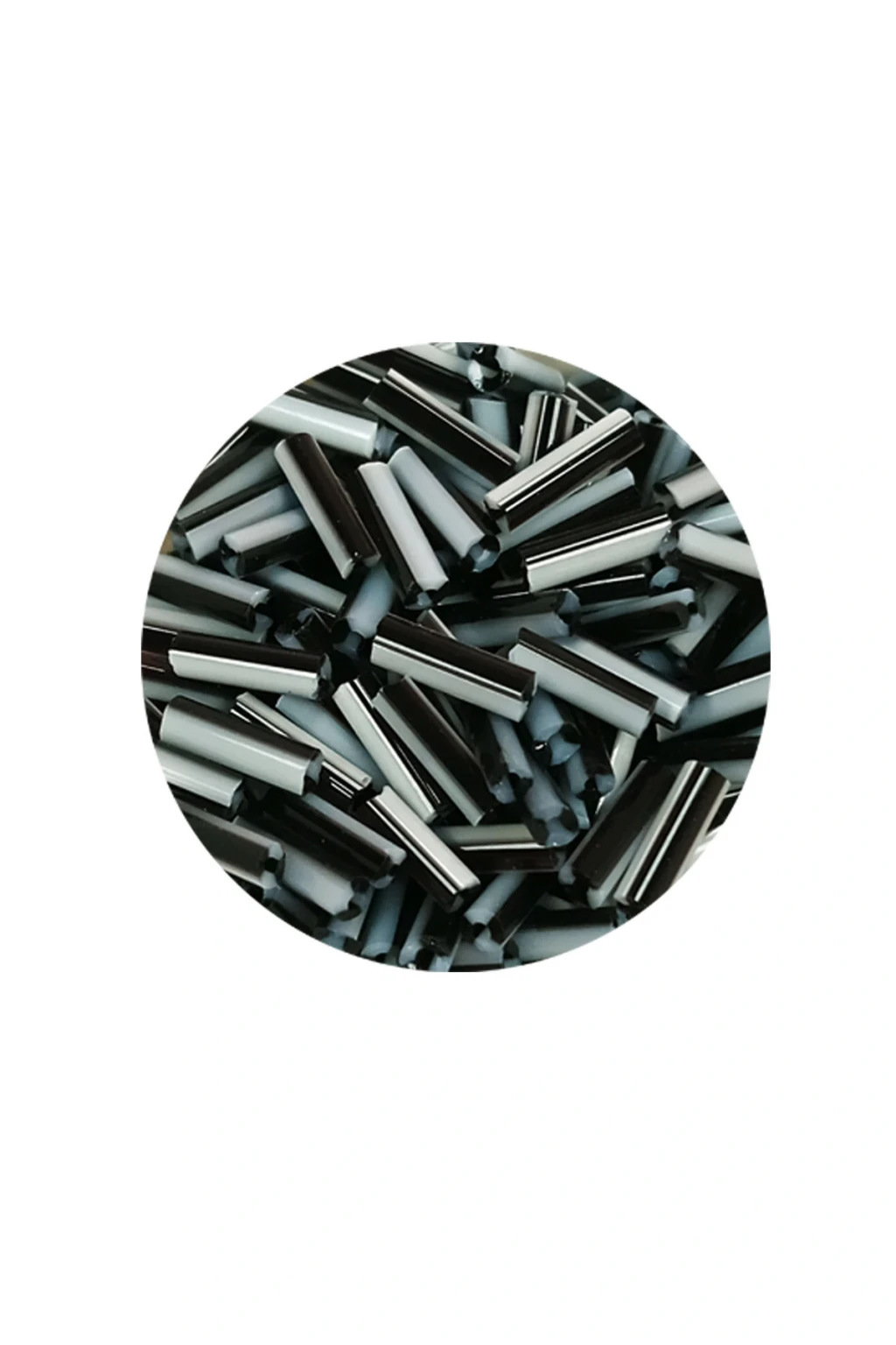 Uzun Boru Kesme Boncuk Çap 2mm Uzunluk 10 mm - 20 Gram - Siyah Beyaz - BNC251
