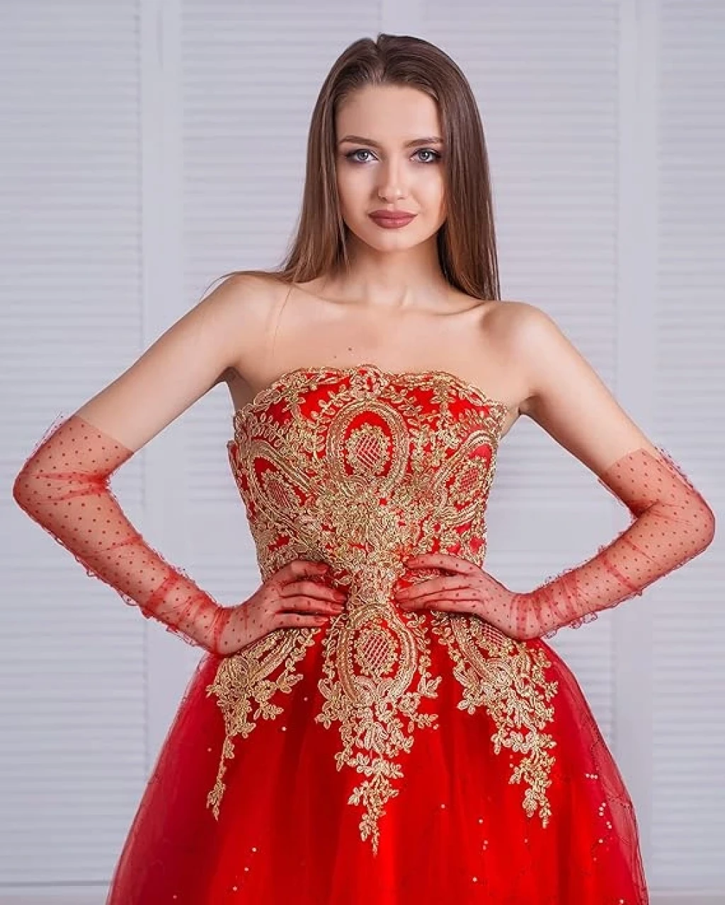 Uzun Boy Kırmızı Puantiyeli Kırmızı Renk Yetişkin Tül Eldiven