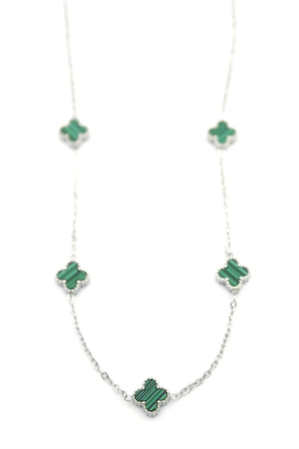 Vc Yonca Kolye - Gümüş Renk - Yeşil