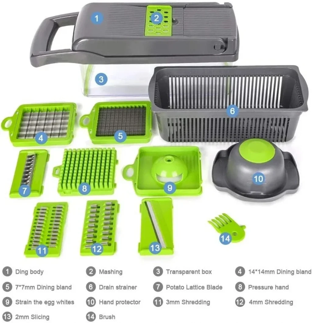 14'ü 1 Arada Sebze Doğrayıcı Meyve Dilimleyici Gıda Parçalayıcı Kesici Rende Dicer