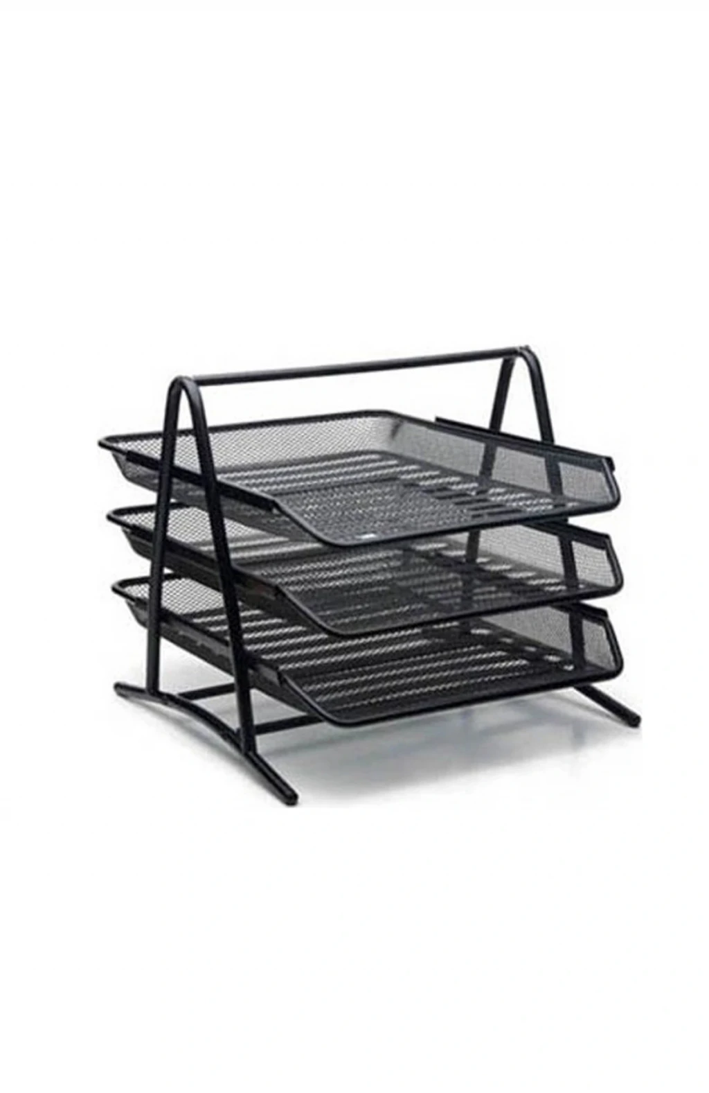 Viva İnox 3 Lü Metal Evrak Rafı Siyah