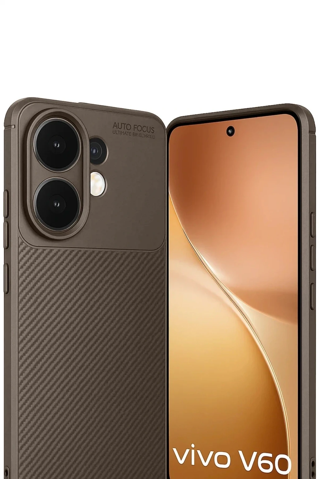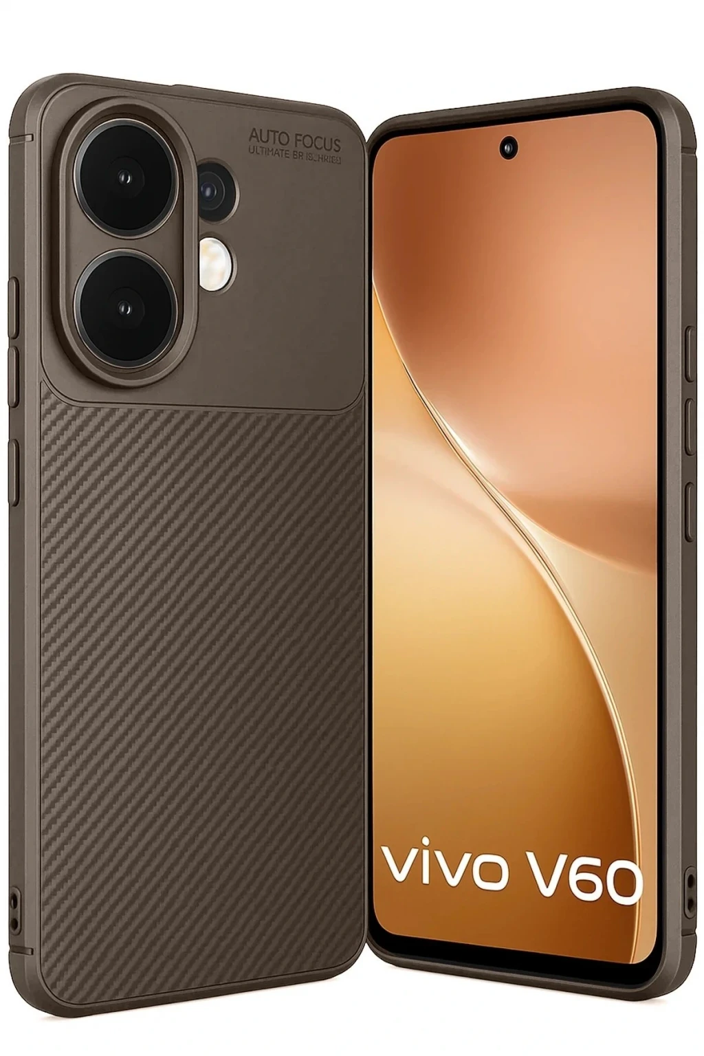 Vivo V60 5G Auto Focus Karbon Kapak - Kahverengi