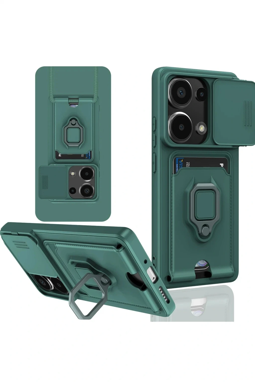 Xiaomi Redmi Note 13 Pro 4G Kılıf Zuma Kartvizitli Yüzüklü Silikon - Yeşil