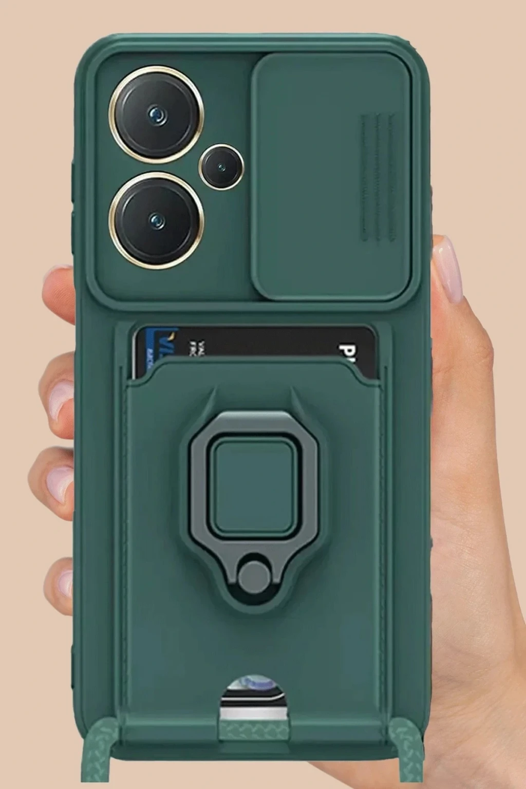 Xiaomi Redmi Note 13 Pro Plus Kılıf Zuma Kartvizitli Yüzüklü Silikon - Yeşil
