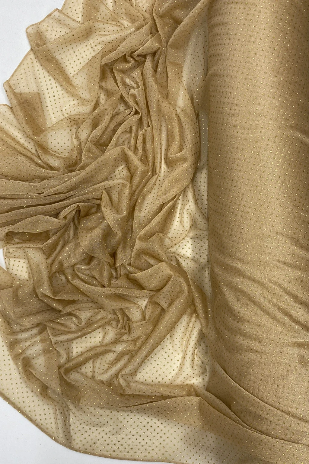 Yağmur Damlası Simli Abiye Elbise Şallık Tül Kumaş Gold 28