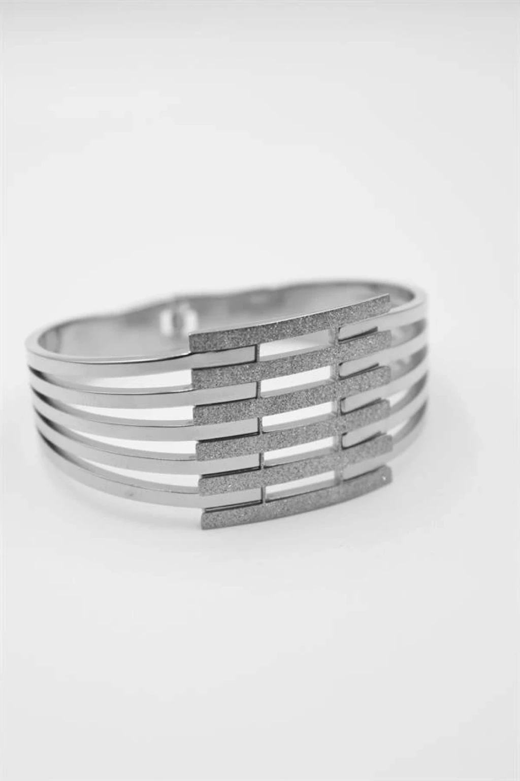 Yaldızlı Kalın Kaburga Bilezik - Gümüş