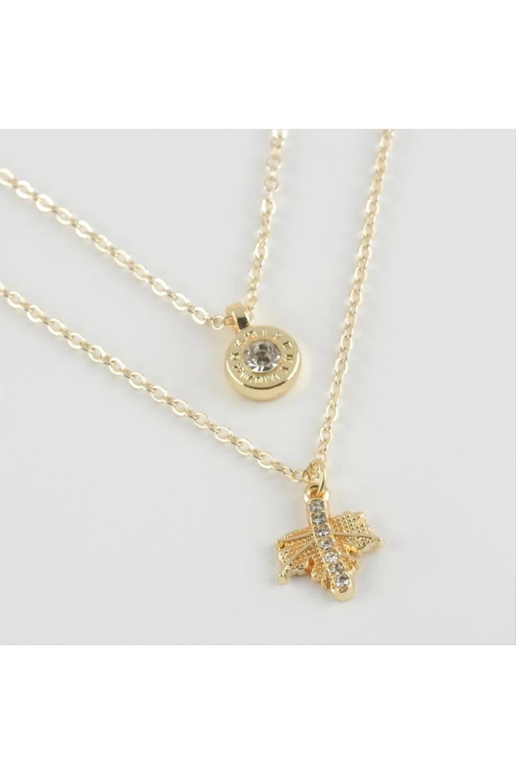 Yaprak Figürlü Yeni Sezon İkili Kolye