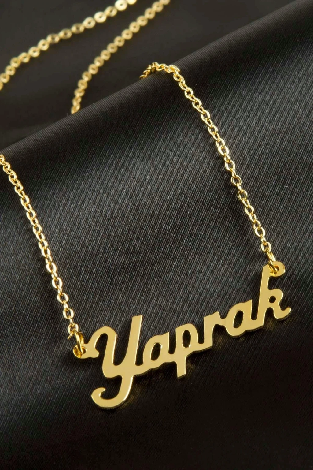 Yaprak isimli kolye. İsimli kolye pirinç madeninden ve altın kaplamalıdır. Kişiye özel üretilmektedir.Yazdırmak istediğiniz ismi bize mesaj olarak iletmeniz gerekmektedir. Kullanıma bağlı olarak uzun süre kullanıma uygundur. Ürün malzemesi 1.sınıf kalitededir. Ürün ve zinciri sarı renktedir. Ürün zincir boyu 45 cm ve ürün üzerindeki isimler yaklaşık 3 cmdir. İsim boyları ürün ismine göre degişiklik göstermektedir.