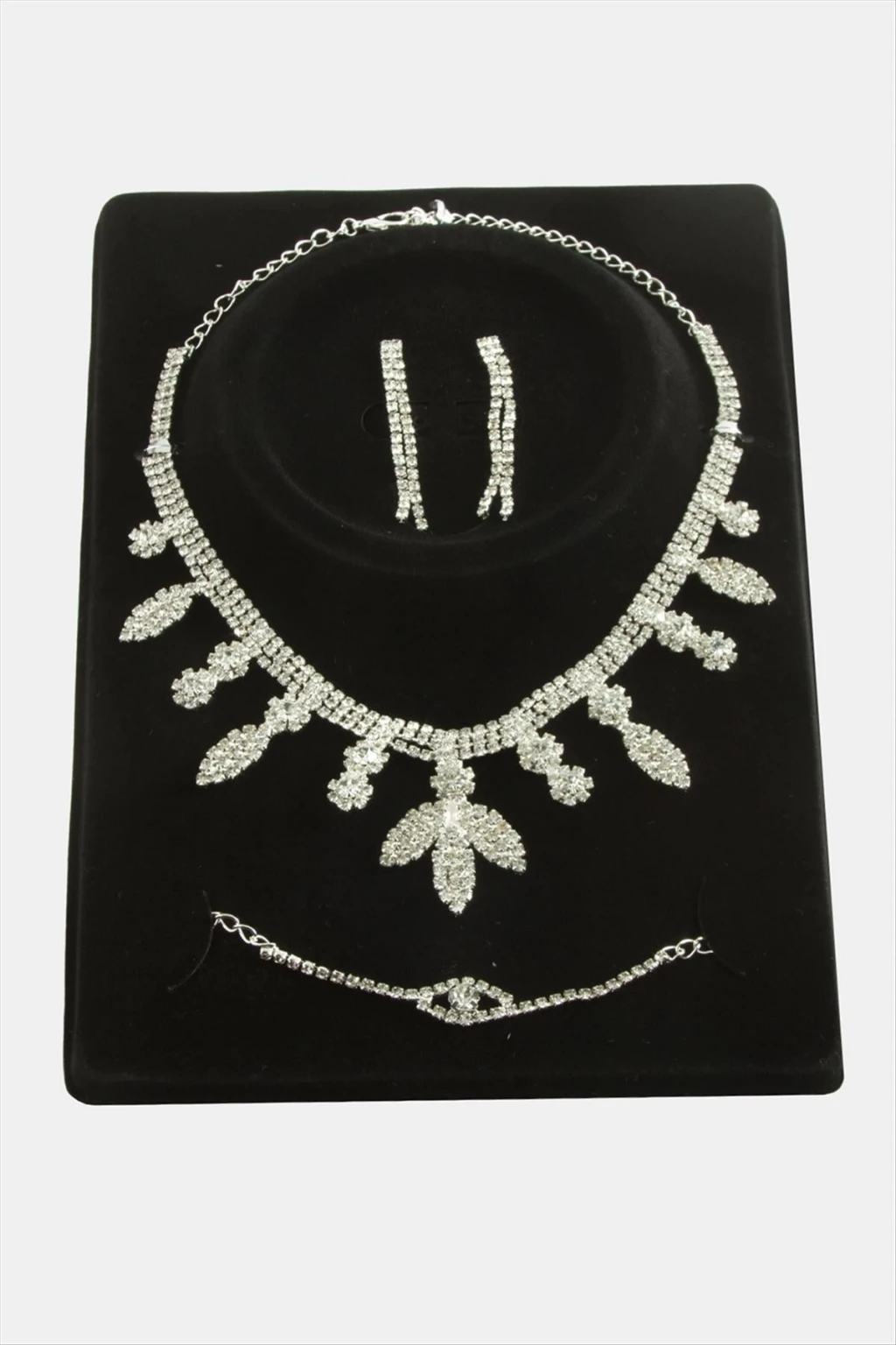 Set Kolye; Ürün malzemesi zirkon taştır. Ürün 1 sınıf kaliteli malzemeden üretilmiştir.Ürün kolye boyu 40 cm, bileklik boyu 18 cm ve küpe uzunluğu 3 cmdir. Ürün içersinde kolye, bileklik ve küpedir. Kartlı ve paketiyle beraber gönderilecektir. Duş, deniz vb yerlerde kullanıma uygun degildir.