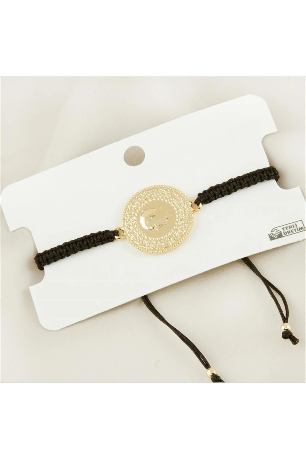 Bileklik; Ürün malzemesi makrome örgü ve metaldir. Ürün Bileğe göre ayarlamalıdır. Plaka boyu 2,5 cmdir.