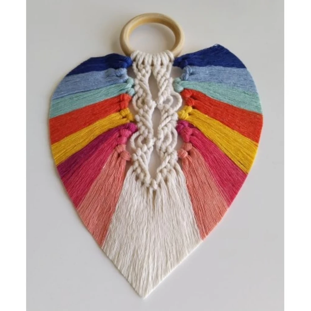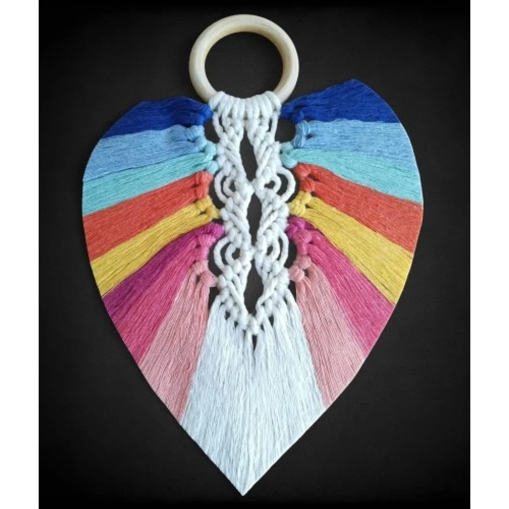 Duvar süsümüzde yedi çakra renkleri kullanılmıştır. Duvar süsümüz doğal ip kullanılarak üretilmektedir. Ürünümüzün yaprak kısmı 20 santimetre eninde, 22 santimetre boyundadır. Duvar dekorumuz ahşap asma aparatı dahil 28 santimetre boyundadır.