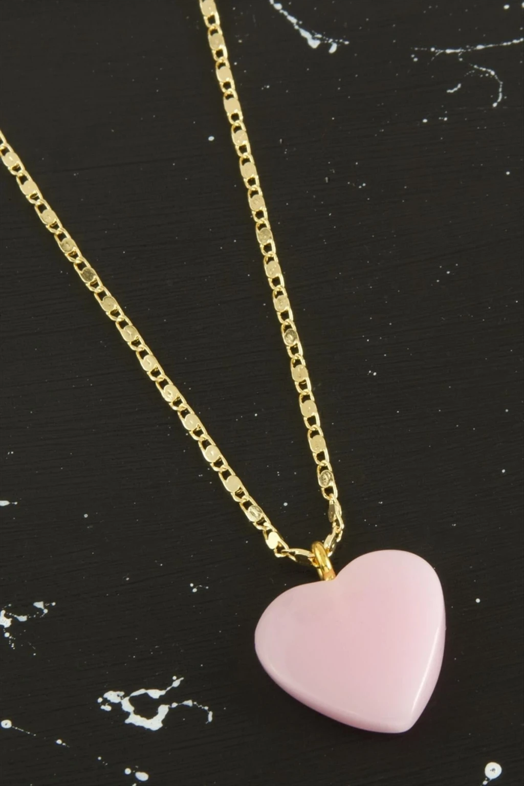 Kolye; Ürün zincir bölümü metal ve kalp bölümü plastiktir. Zincir uzunluğu 45 cm ve ucundaki kalp aparat boyu 2 cmdir.