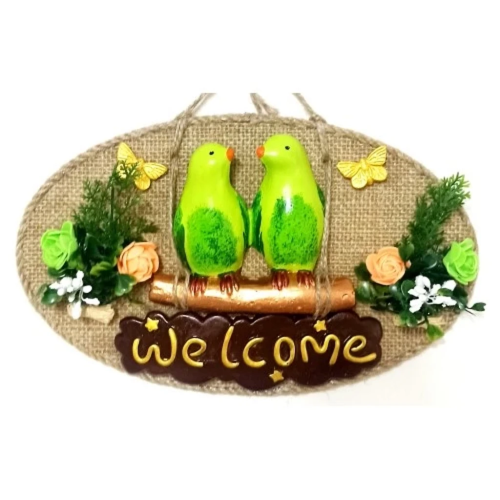 Yeşil kuşlu kapı süsümüz 4 mm mdf üzerine jüt kumaş ile üretilmiştir. Ürünümüz tamamen el işçiliği olup boyaması elde yapılmaktadır. Ürünümüz 26 cm eninde, 16 cm boyundadır. Ürünümüz ip dahil 28 cm boyundadır.