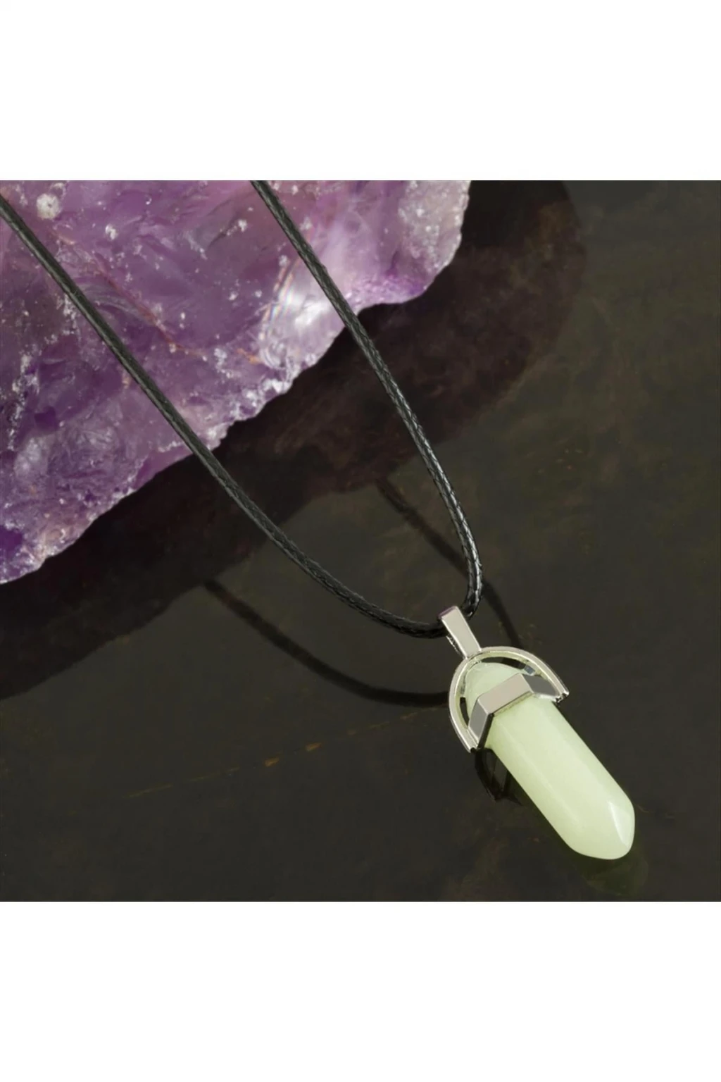 Kolye; Ürün malzemesi point taş ve metaldir. Ürün boyu 45 cmdir. Ürün ucundaki aparat boyu 3,5 cmdir.