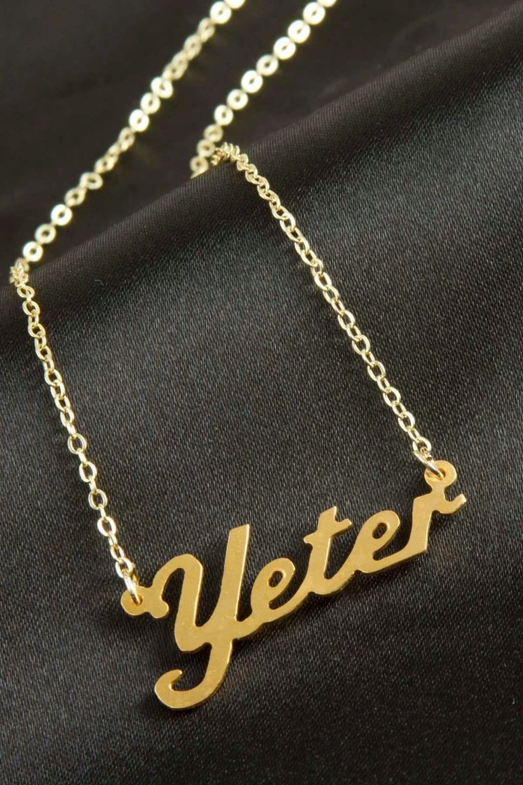 Yeter isimli kolye. İsimli kolye pirinç madeninden ve altın kaplamalıdır. Kişiye özel üretilmektedir.Yazdırmak istediğiniz ismi bize mesaj olarak iletmeniz gerekmektedir. Kullanıma bağlı olarak uzun süre kullanıma uygundur. Ürün malzemesi 1.sınıf kalitededir. Ürün ve zinciri sarı renktedir. Ürün zincir boyu 45 cm ve ürün üzerindeki isimler yaklaşık 3 cmdir. İsim boyları ürün ismine göre degişiklik göstermektedir.