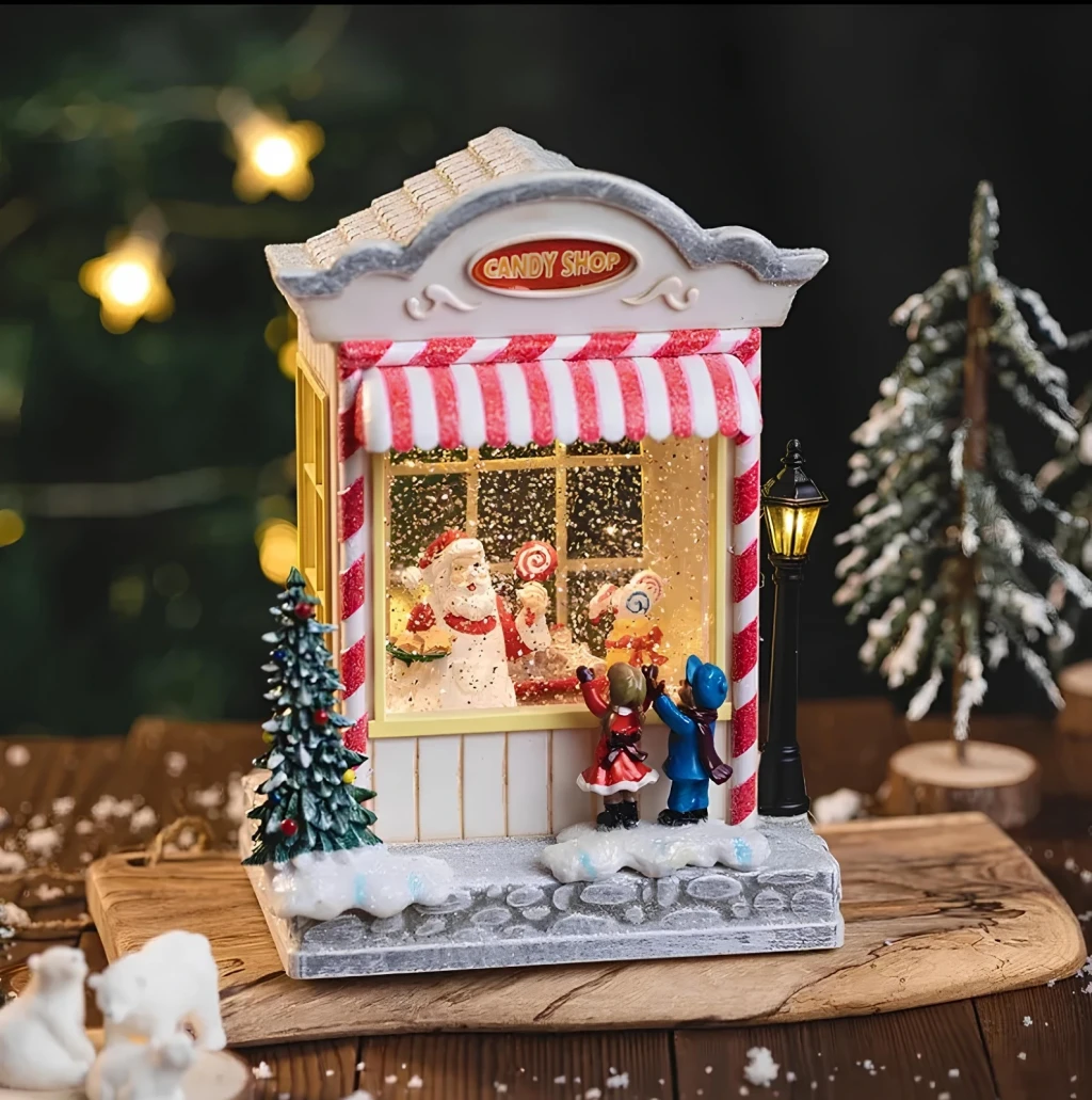 Yılbaşı Temalı Şekerci Dükkanı Kar Küresi Işıklı Müzikli