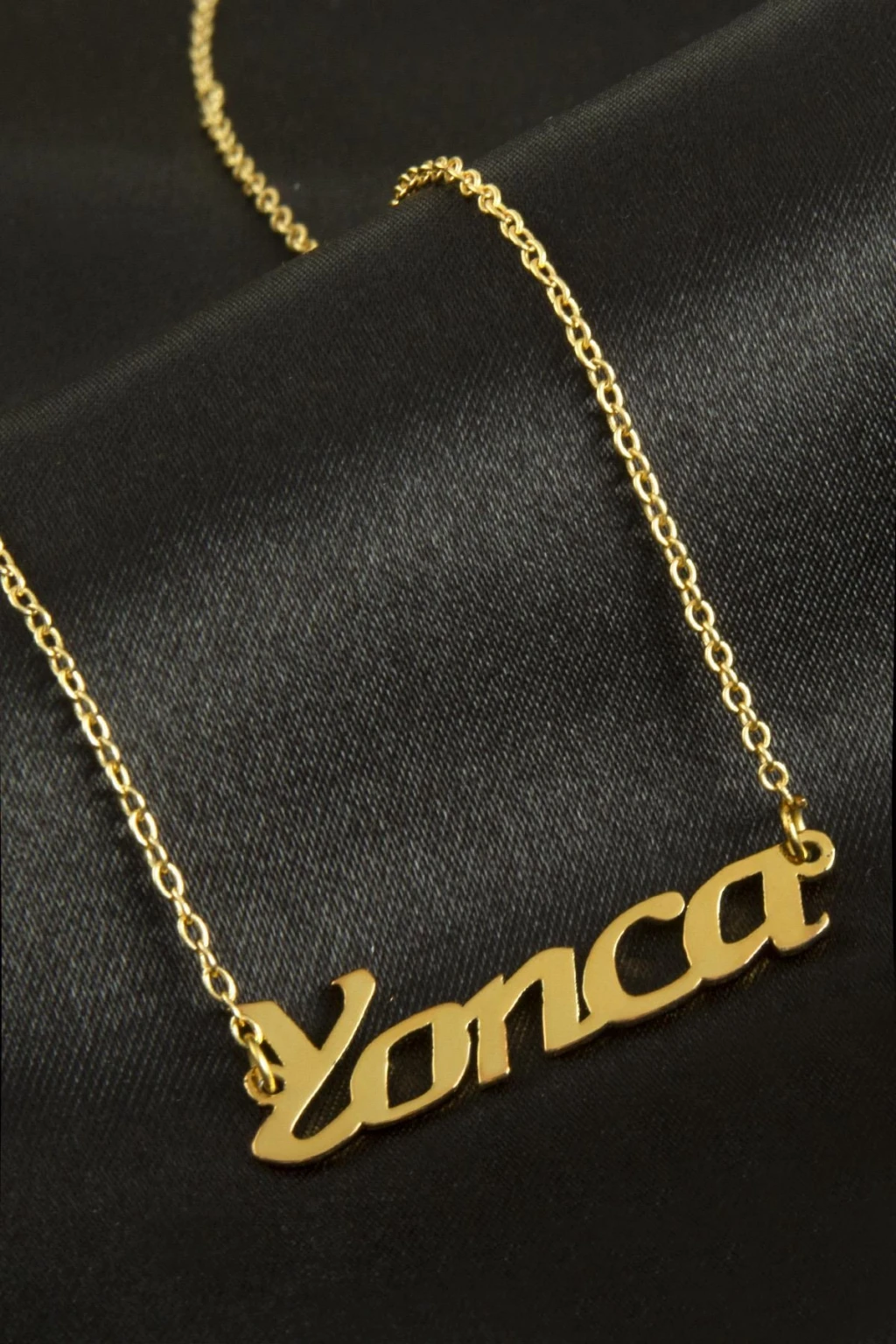 Yonca isimli kolye. İsimli kolye pirinç madeninden ve altın kaplamalıdır. Kişiye özel üretilmektedir.Yazdırmak istediğiniz ismi bize mesaj olarak iletmeniz gerekmektedir. Kullanıma bağlı olarak uzun süre kullanıma uygundur. Ürün malzemesi 1.sınıf kalitededir. Ürün ve zinciri sarı renktedir. Ürün zincir boyu 45 cm ve ürün üzerindeki isimler yaklaşık 3 cmdir. İsim boyları ürün ismine göre degişiklik göstermektedir.