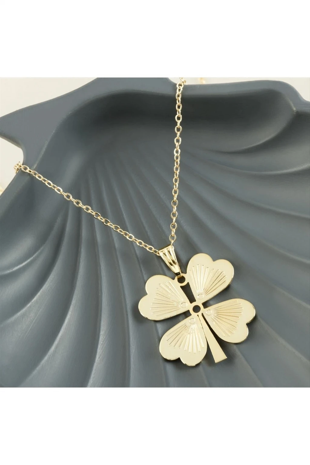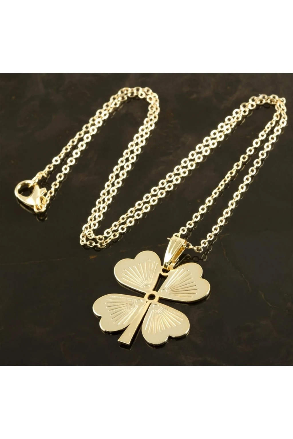 Kolye; Ürün malzemesi metaldir. Ürün boyu 45 cmdir. Kartıyla beraber gönderilecektir. Ucundaki yonca figürü 2,5 cmdir.