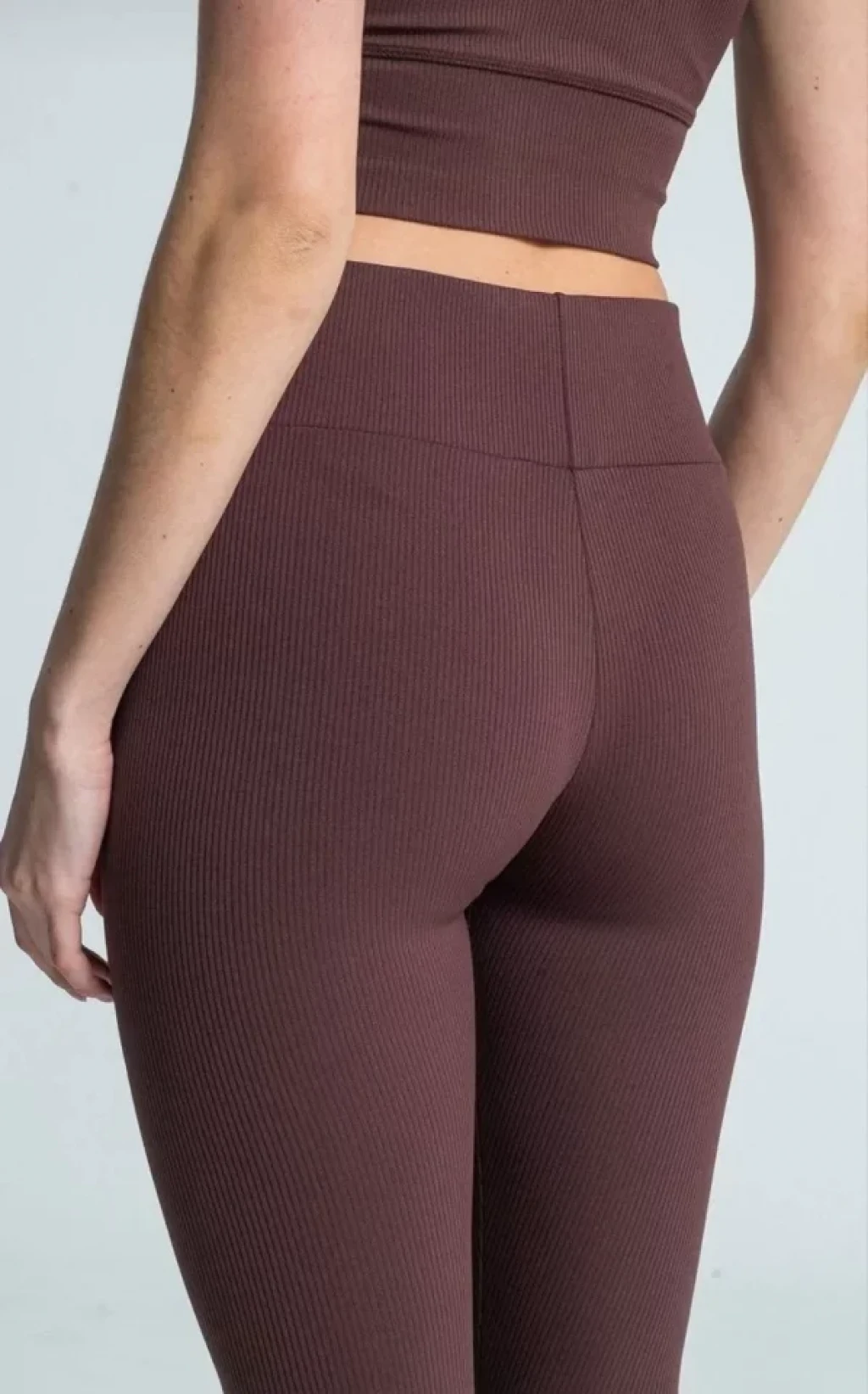 Yüksek Bel Fitilli Tayt - Kahverengi