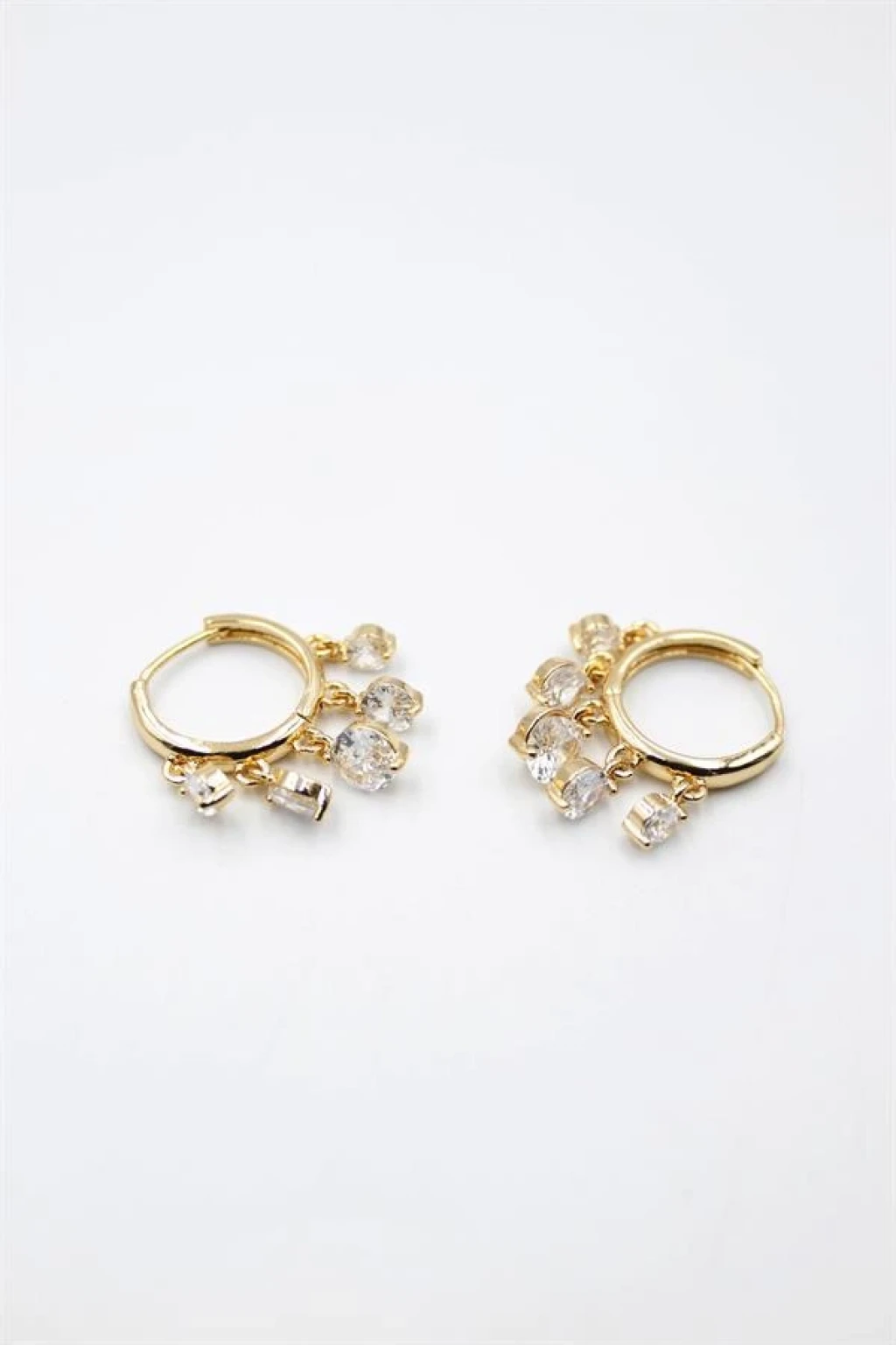 Yuvarlak Taşlı Shakira Küpe - Altın