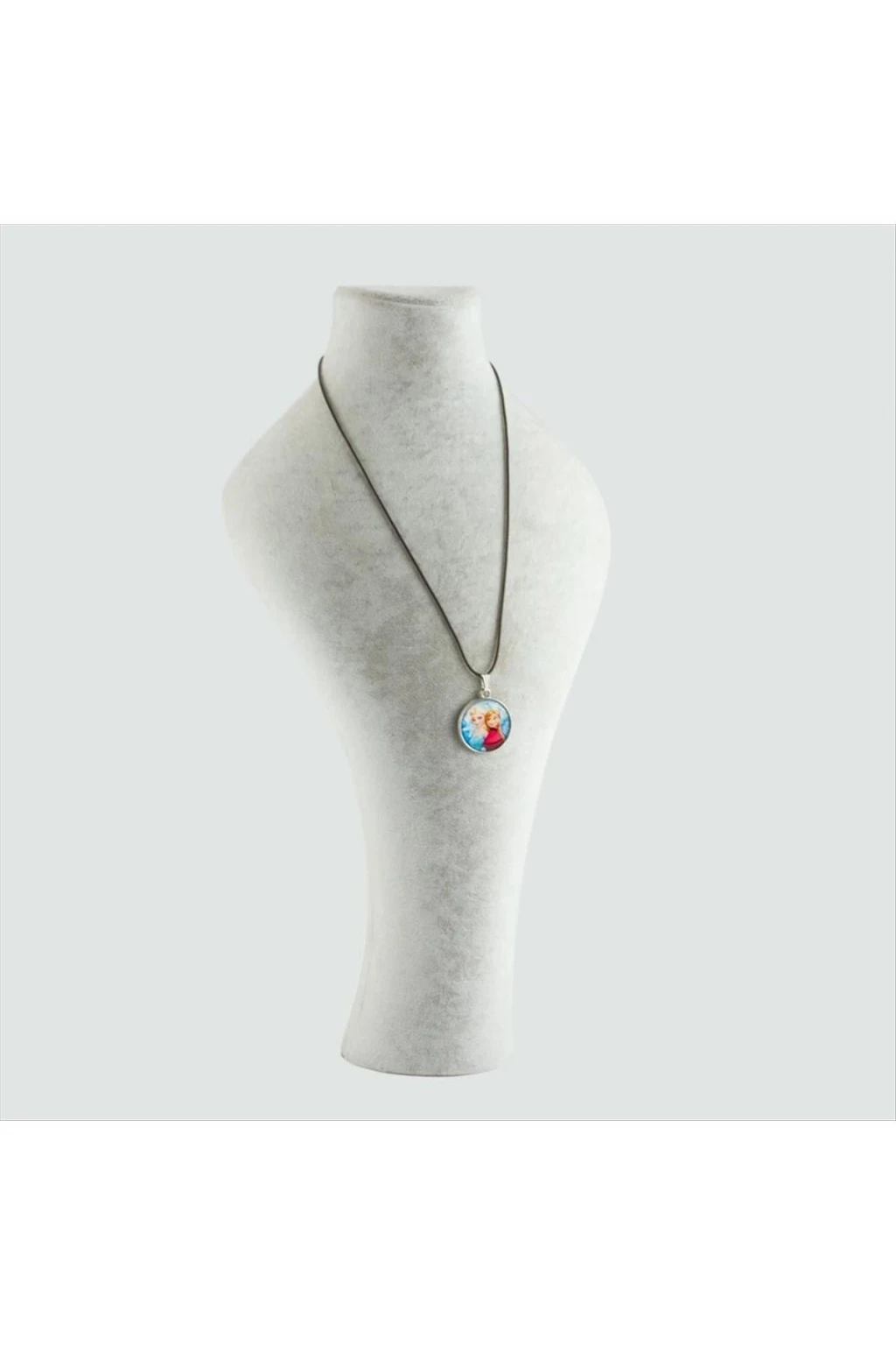 Kolye; Ürün malzemesi deri, metaldir. Ürün metal üzerine yapıştırılmış sticker ile yapılmışdır.
