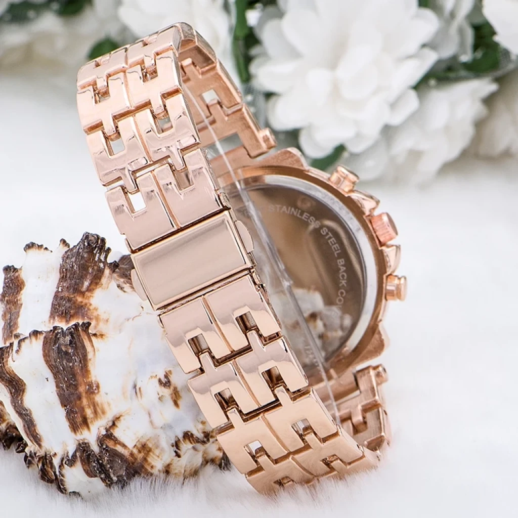Renk Seçenekleri: Bu özel tasarım saat, rose renginin yanı sıra farklı renk seçenekleri sunabilir, böylece kişisel tarzınıza uygun olanı seçme özgürlüğüne sahipsiniz.