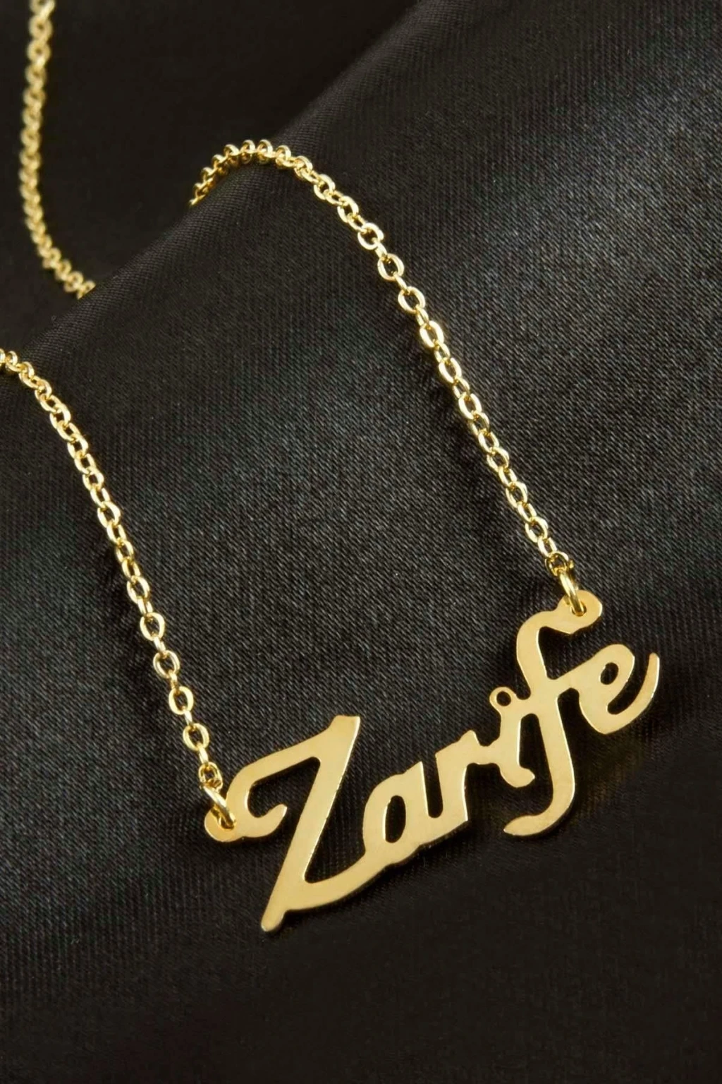 Zarife İsimli Kolye. İsimli kolye pirinç madeninden ve altın kaplamalıdır. Kişiye özel üretilmektedir.Yazdırmak istediğiniz ismi bize mesaj olarak iletmeniz gerekmektedir. Kullanıma bağlı olarak uzun süre kullanıma uygundur. Ürün malzemesi 1.sınıf kalitededir. Ürün ve zinciri sarı renktedir. Ürün zincir boyu 45 cm ve ürün üzerindeki isimler yaklaşık 3 cmdir. İsim boyları ürün ismine göre degişiklik göstermektedir.