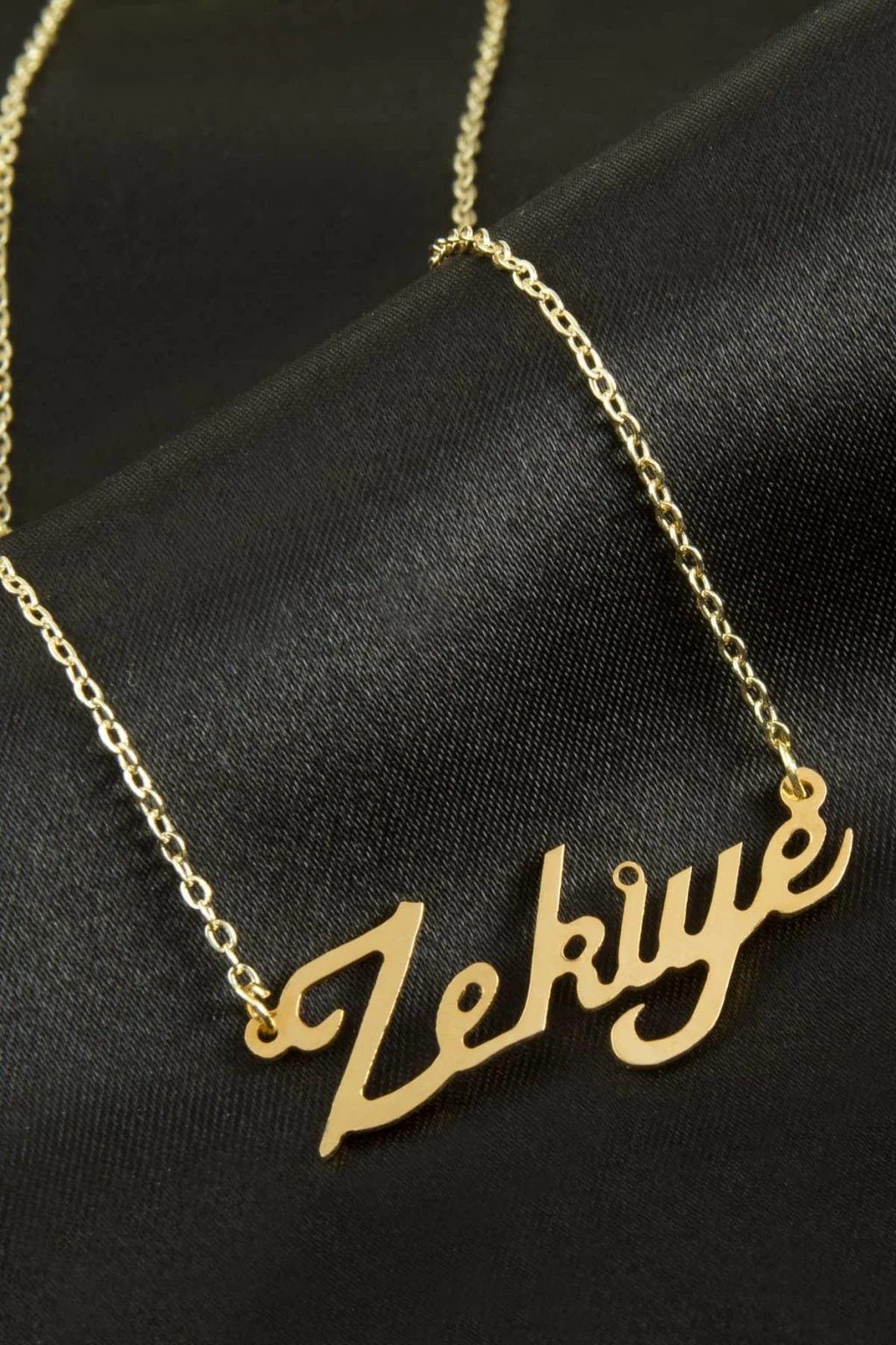 Zekiye isimli kolye. İsimli kolye pirinç madeninden ve altın kaplamalıdır. Kişiye özel üretilmektedir.Yazdırmak istediğiniz ismi bize mesaj olarak iletmeniz gerekmektedir. Kullanıma bağlı olarak uzun süre kullanıma uygundur. Ürün malzemesi 1.sınıf kalitededir. Ürün ve zinciri sarı renktedir. Ürün zincir boyu 45 cm ve ürün üzerindeki isimler yaklaşık 3 cmdir. İsim boyları ürün ismine göre degişiklik göstermektedir.