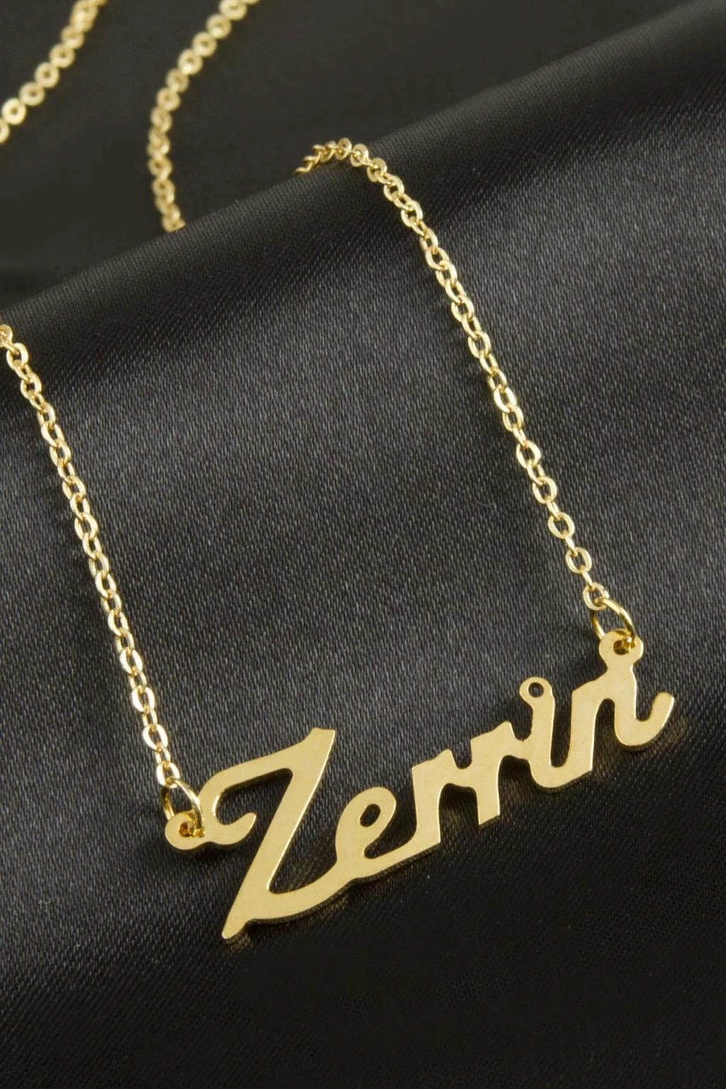 Zerrin isimli kolye. İsimli kolye pirinç madeninden ve altın kaplamalıdır. Kişiye özel üretilmektedir.Yazdırmak istediğiniz ismi bize mesaj olarak iletmeniz gerekmektedir. Kullanıma bağlı olarak uzun süre kullanıma uygundur. Ürün malzemesi 1.sınıf kalitededir. Ürün ve zinciri sarı renktedir. Ürün zincir boyu 45 cm ve ürün üzerindeki isimler yaklaşık 3 cmdir. İsim boyları ürün ismine göre degişiklik göstermektedir.