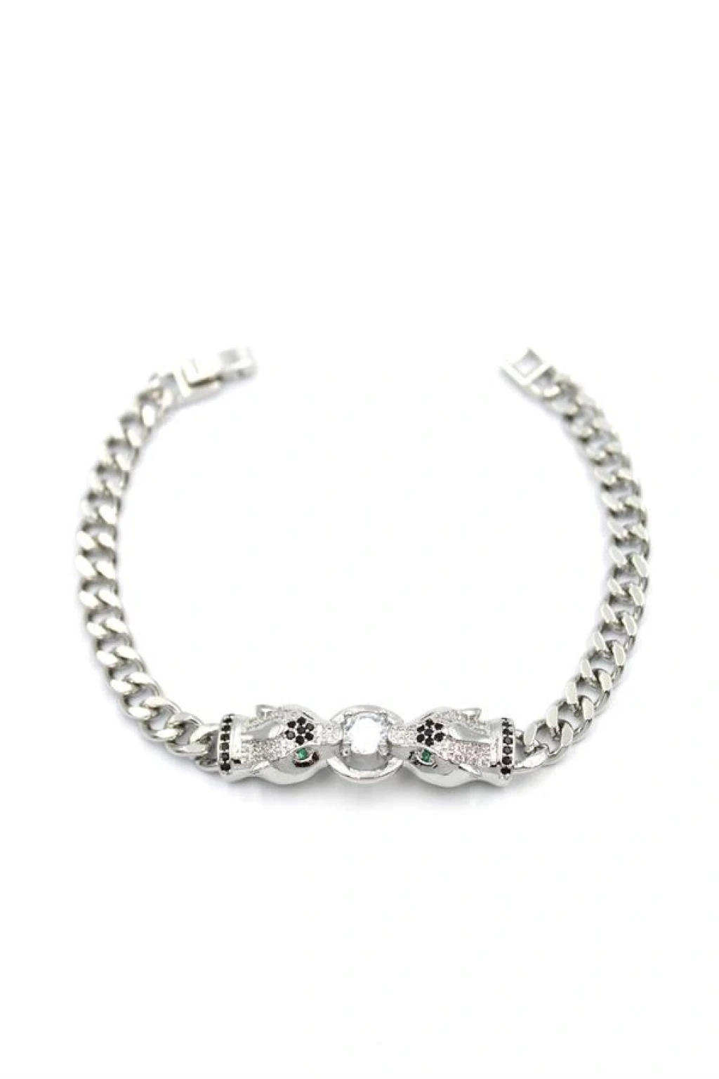 Zirkon Taşlı Leopar Bileklik - Gümüş