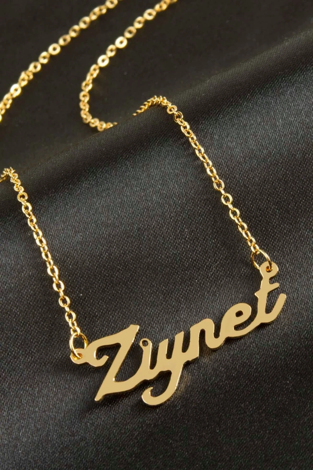 Ziynet isimli kolye. İsimli kolye pirinç madeninden ve altın kaplamalıdır. Kişiye özel üretilmektedir.Yazdırmak istediğiniz ismi bize mesaj olarak iletmeniz gerekmektedir. Kullanıma bağlı olarak uzun süre kullanıma uygundur. Ürün malzemesi 1.sınıf kalitededir. Ürün ve zinciri sarı renktedir. Ürün zincir boyu 45 cm ve ürün üzerindeki isimler yaklaşık 3 cmdir. İsim boyları ürün ismine göre degişiklik göstermektedir.